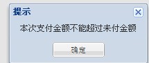 如果输入的金额超过了 “未付金额” 下的金额,则系统弹出提示如图2-3 所示。